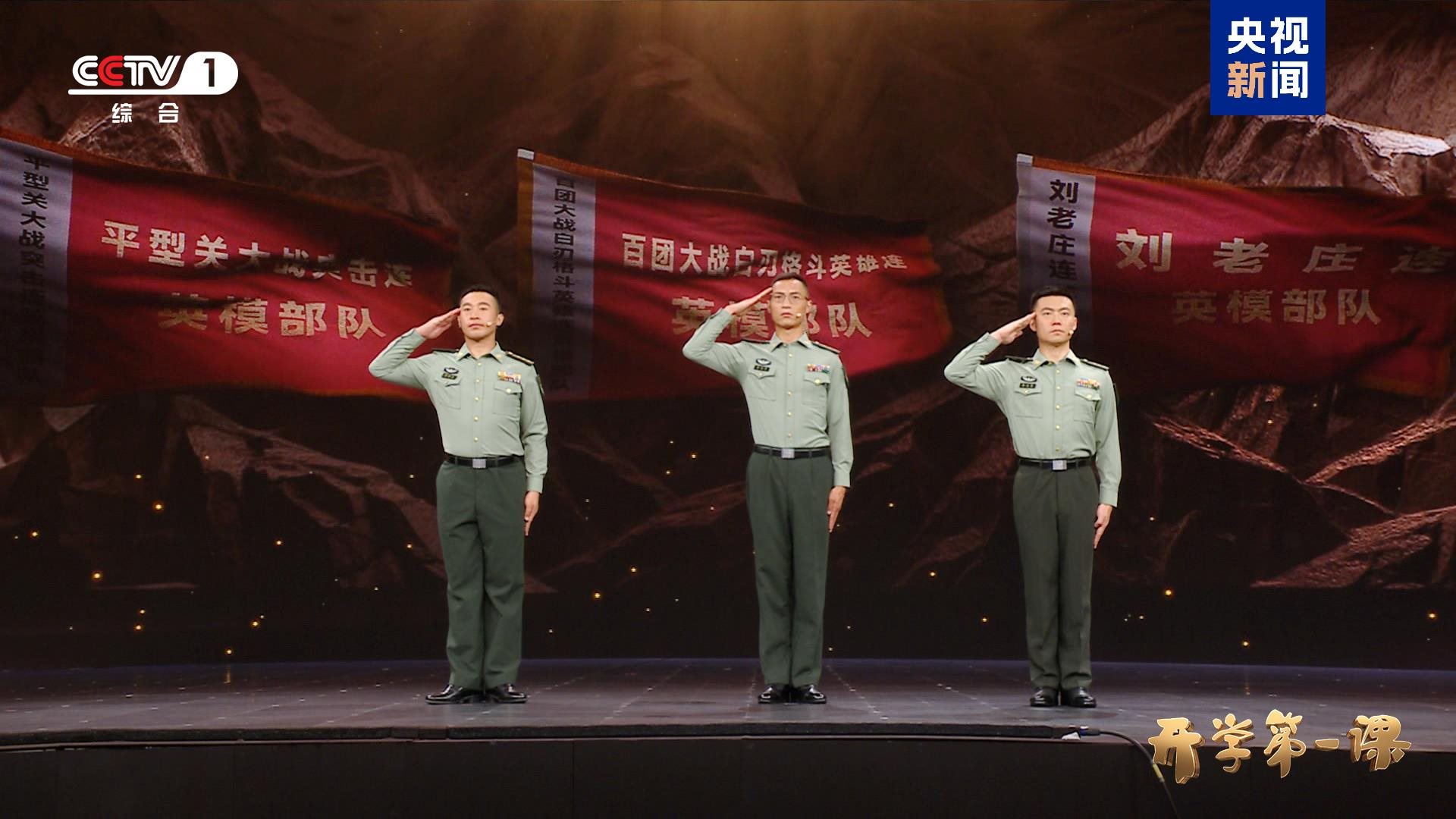 節(jié)目中,三面來自抗戰(zhàn)英雄連隊的戰(zhàn)旗首次同臺亮相,三支英雄連隊的代表——“平型關大戰(zhàn)突擊連”政治指導員栗新朝、“白刃格斗英雄連”政治指導員徐尤秀、“劉老莊連”政治指導員戴天驕將現(xiàn)場講述平型關大捷、百團大戰(zhàn)、劉老莊戰(zhàn)斗等著名戰(zhàn)役中發(fā)生的動人故事,展現(xiàn)英雄連隊不畏強暴、血戰(zhàn)到底的英雄氣概與精神傳承。