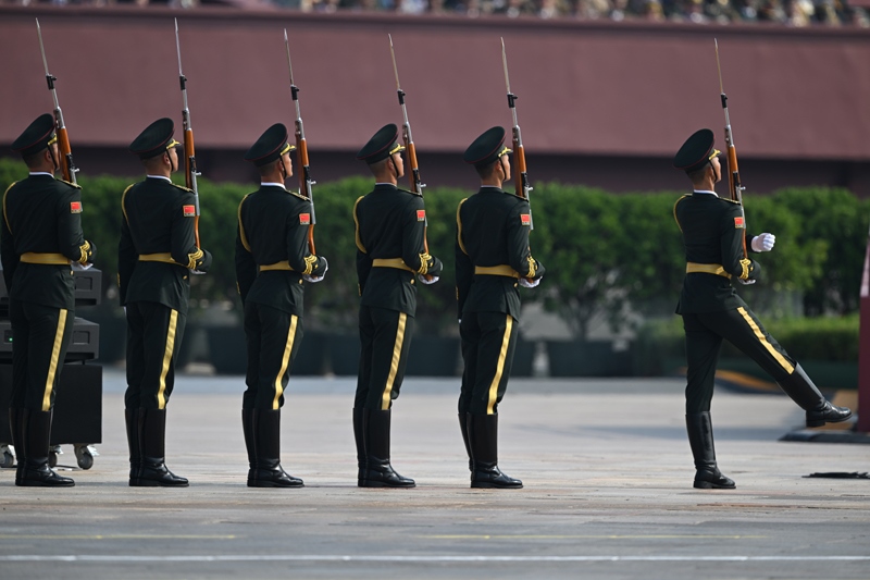 9月3日,紀(jì)念中國人民抗日戰(zhàn)爭暨世界反法西斯戰(zhàn)爭勝利80周年大會在北京隆重舉行。這是標(biāo)兵就位。