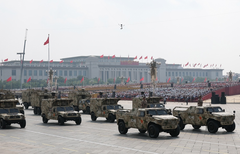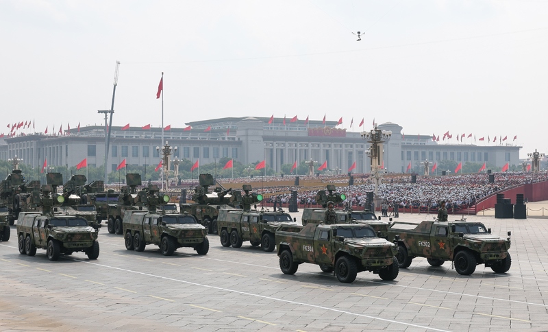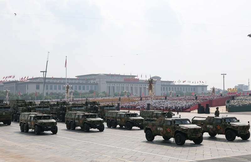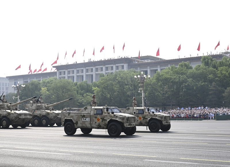 9月3日,紀(jì)念中國(guó)人民抗日戰(zhàn)爭(zhēng)暨世界反法西斯戰(zhàn)爭(zhēng)勝利80周年大會(huì)在北京隆重舉行。這是信息支援方隊(duì)通過(guò)天安門(mén)廣場(chǎng)。