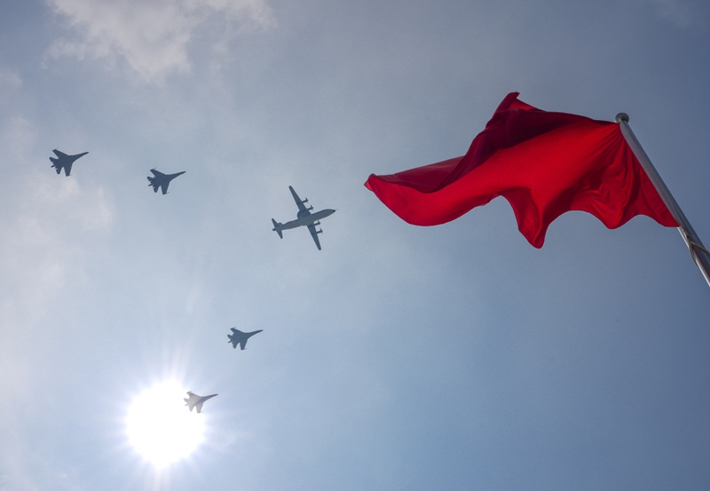 9月3日,紀(jì)念中國(guó)人民抗日戰(zhàn)爭(zhēng)暨世界反法西斯戰(zhàn)爭(zhēng)勝利80周年大會(huì)在北京隆重舉行。這是空中梯隊(duì)接受檢閱。