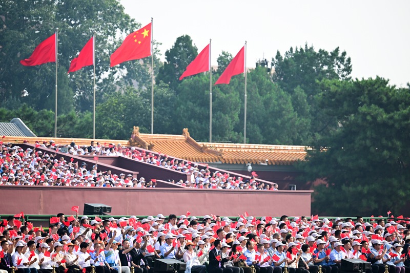 9月3日,紀(jì)念中國(guó)人民抗日戰(zhàn)爭(zhēng)暨世界反法西斯戰(zhàn)爭(zhēng)勝利80周年大會(huì)在北京隆重舉行。這是觀禮嘉賓。
