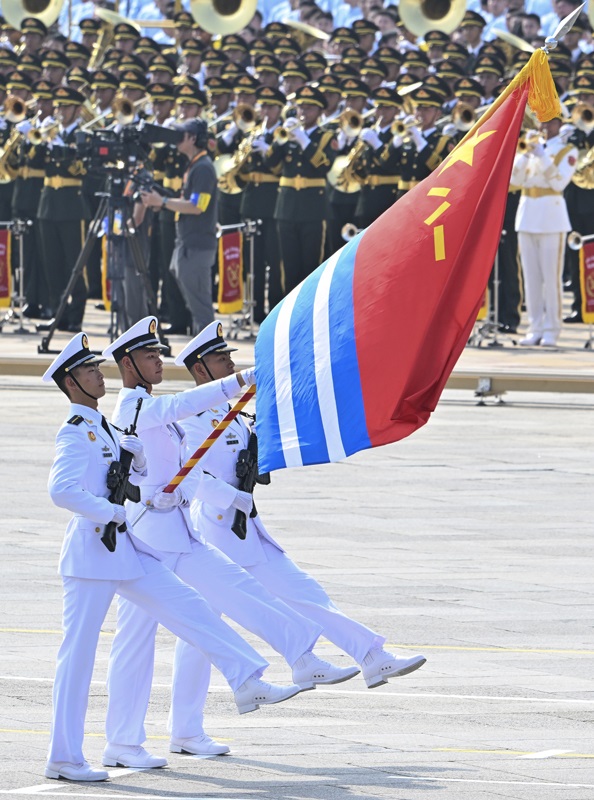 9月3日,紀(jì)念中國(guó)人民抗日戰(zhàn)爭(zhēng)暨世界反法西斯戰(zhàn)爭(zhēng)勝利80周年大會(huì)在北京隆重舉行。這是海軍方隊(duì)通過(guò)天安門(mén)廣場(chǎng)。