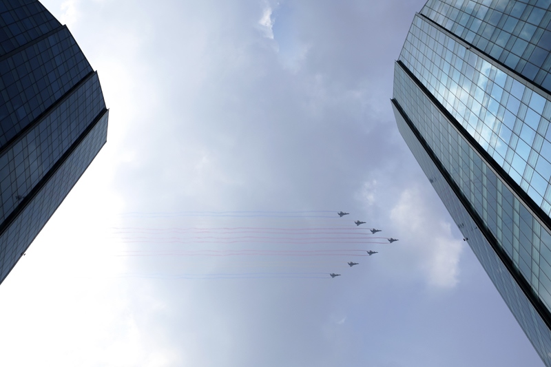 9月3日,紀(jì)念中國(guó)人民抗日戰(zhàn)爭(zhēng)暨世界反法西斯戰(zhàn)爭(zhēng)勝利80周年大會(huì)在北京隆重舉行。這是空中護(hù)旗梯隊(duì)通過(guò)天安門(mén)廣場(chǎng)。