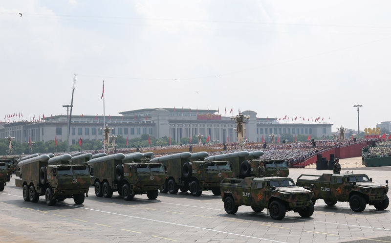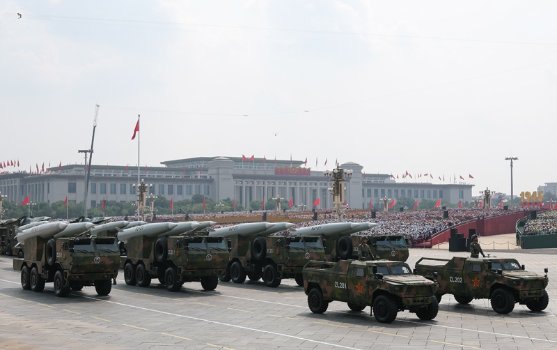 9月3日,紀(jì)念中國(guó)人民抗日戰(zhàn)爭(zhēng)暨世界反法西斯戰(zhàn)爭(zhēng)勝利80周年大會(huì)在北京隆重舉行。這是高超聲速導(dǎo)彈方隊(duì)接受檢閱。