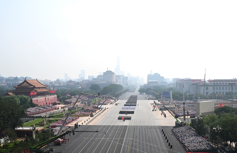 9月3日,紀(jì)念中國(guó)人民抗日戰(zhàn)爭(zhēng)暨世界反法西斯戰(zhàn)爭(zhēng)勝利80周年大會(huì)在北京隆重舉行。這是徒步方隊(duì)接受檢閱。