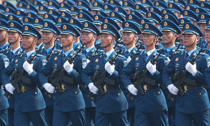 9月3日,紀(jì)念中國人民抗日戰(zhàn)爭暨世界反法西斯戰(zhàn)爭勝利80周年大會在北京隆重舉行。這是空軍方隊(duì)接受檢閱。