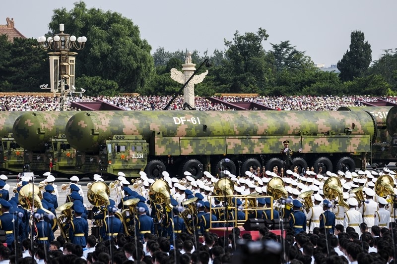 9月3日,紀(jì)念中國人民抗日戰(zhàn)爭暨世界反法西斯戰(zhàn)爭勝利80周年大會在北京隆重舉行。這是火箭軍方隊(duì)接受檢閱。