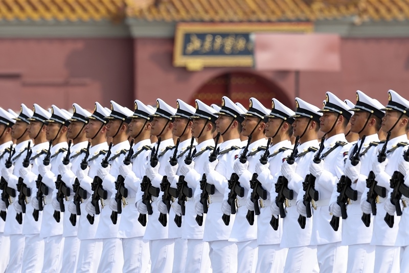 9月3日,紀(jì)念中國人民抗日戰(zhàn)爭暨世界反法西斯戰(zhàn)爭勝利80周年大會在北京隆重舉行。這是海軍方隊(duì)接受檢閱。