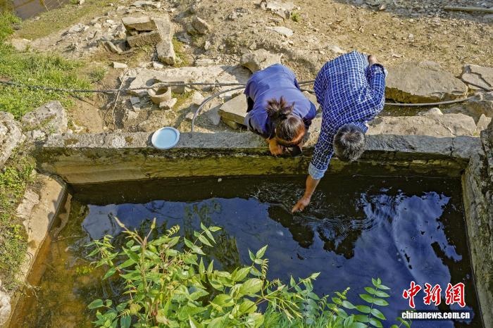 夫妻倆每天都要查看水池里的中國小鯢。劉影 攝