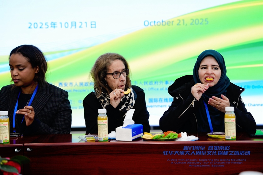 10月21日,秋光漫過秦嶺北麓的田野,來自土庫曼斯坦、約旦、巴林、科摩羅、也門、薩摩亞、馬耳他、埃塞俄比亞、土耳其、比利時(shí)、摩洛哥、孟加拉國、烏茲別克斯坦等13個(gè)國家的駐華大使夫人,走進(jìn)西安市周至縣周一村獼猴桃產(chǎn)業(yè)基地。這片被秦嶺滋養(yǎng)的土地,不僅是秦嶺生態(tài)饋贈(zèng)的“甜蜜樣本”,更成為大使夫人們探尋中國鄉(xiāng)村產(chǎn)業(yè)振興路徑、觸摸“一帶一路”農(nóng)業(yè)合作潛力的鮮活載體。
