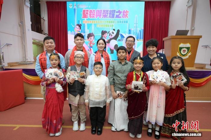 在香港油麻地街坊會學(xué)校,四川省大熊貓國家公園文化創(chuàng)意創(chuàng)新聯(lián)盟副秘書長畢飛向?qū)W生們科普四川生態(tài)及大熊貓保育知識。代表團還向?qū)W生派發(fā)文創(chuàng)貼紙,為體育與大熊貓主題書籍簽名。代表團也和同學(xué)們一起參觀第十五屆全國運動會主題展板。
