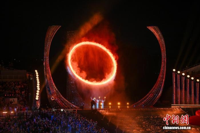 第十五屆全國運(yùn)動會的圣火,在南粵大地畫了一個圈——象征粵港澳三地的三根支柱共同托舉起圓形火環(huán),點(diǎn)燃大灣區(qū)深度交融的又一篇章。