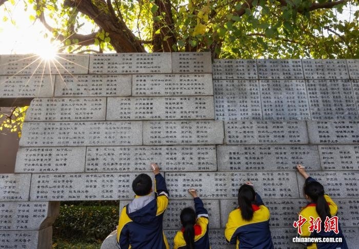 中新社南京11月30日電 (記者 朱曉穎)南京大屠殺死難者家庭祭告活動30日在侵華日軍南京大屠殺遇難同胞紀(jì)念館舉行。南京大屠殺幸存者、南京大屠殺歷史記憶傳承人、南京大屠殺遇難同胞遺屬、青少年及志愿者代表等,聚集在南京大屠殺遇難者名單墻(又稱“哭墻”)前,一同祭奠在大屠殺中慘遭殺害的無辜同胞。