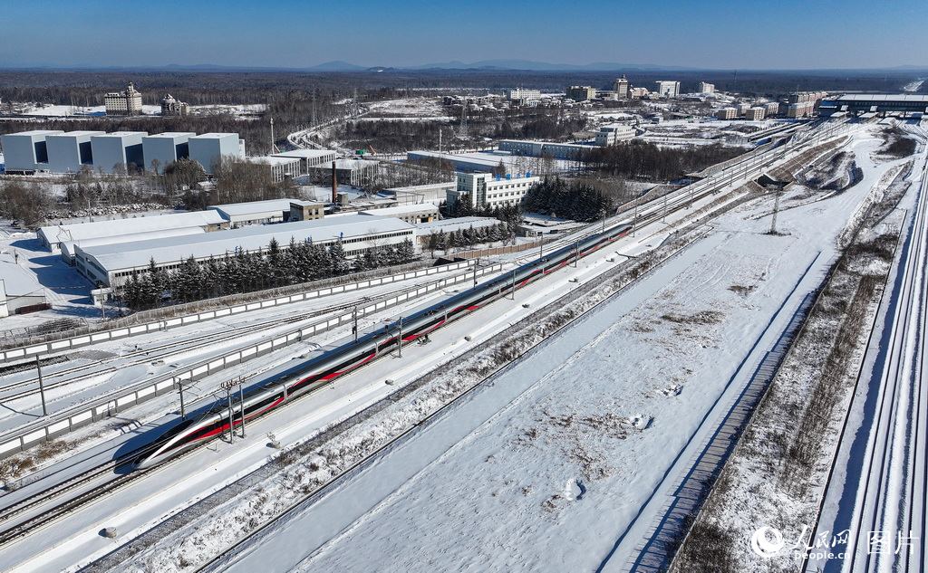 一列復(fù)興號智能動車組列車從長白山西站駛出。
