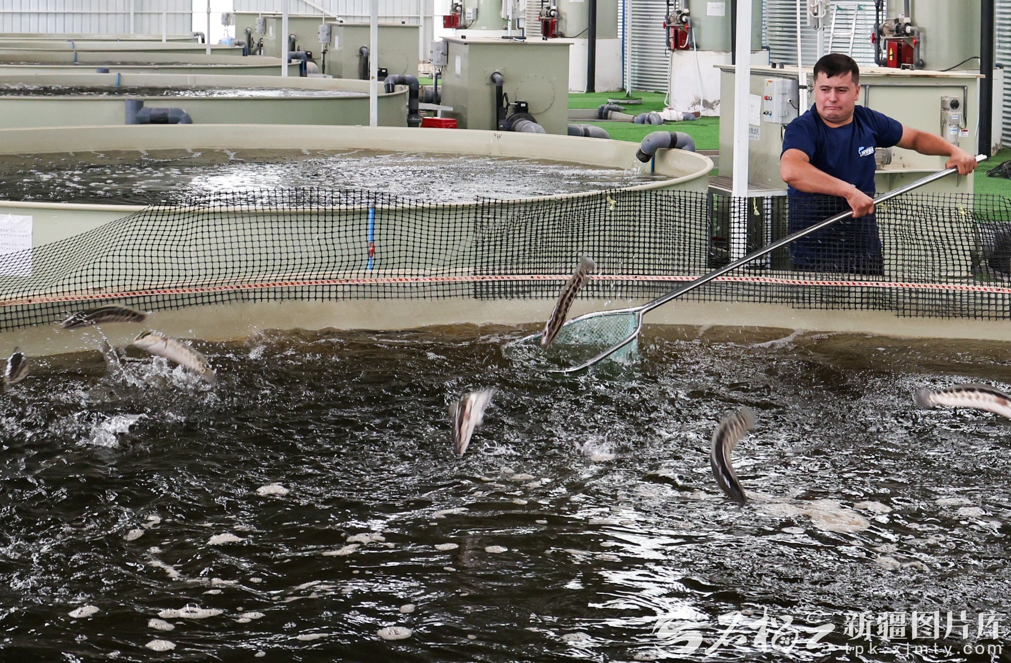 和田域見(jiàn)疆來(lái)水產(chǎn)養(yǎng)殖有限責(zé)任公司員工在對(duì)養(yǎng)殖池的黑魚(yú)進(jìn)行捕撈。許曉龍攝(資料圖)