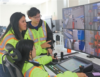 2025年10月7日,在秘魯錢凱港,中遠(yuǎn)海運(yùn)港口秘魯錢凱公司中外員工進(jìn)行作業(yè)監(jiān)控。