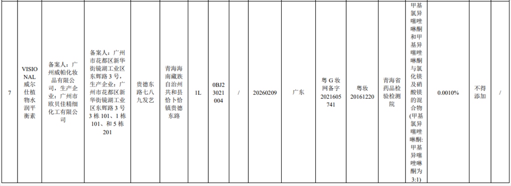 人民網(wǎng)北京10月26日電 (記者孫紅麗)國(guó)家藥監(jiān)局網(wǎng)站26日發(fā)布通告,公布7批次化妝品檢出禁用原料,標(biāo)示名稱分別是幻臻水性彩色指甲油HZ088、幻臻水性彩色指甲油HZ056、unna美甲功能膠加固膠、unna美甲功能膠底膠、貝比拉比蛋黃油、嬰貝萱嬰膚霜、VISIONAL威爾仕植物水潤(rùn)平衡素。