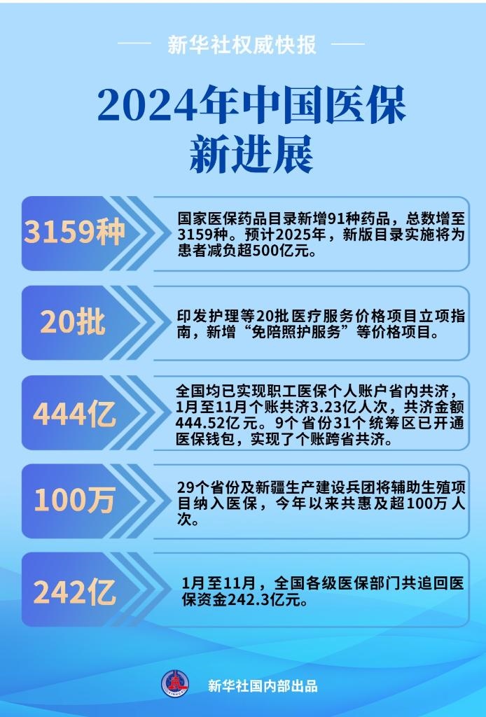 記者12月14日從全國醫(yī)療保障工作會議上獲悉,2024年,基本醫(yī)?!按蠖Y包”不斷擴容。國家醫(yī)保藥品目錄新增91種藥品,總數(shù)增至3159種;第十批國家組織藥品集采成功采購62種藥品;29個省份及新疆生產(chǎn)建設兵團將輔助生殖項目納入醫(yī)保,今年以來共惠及超100萬人次。