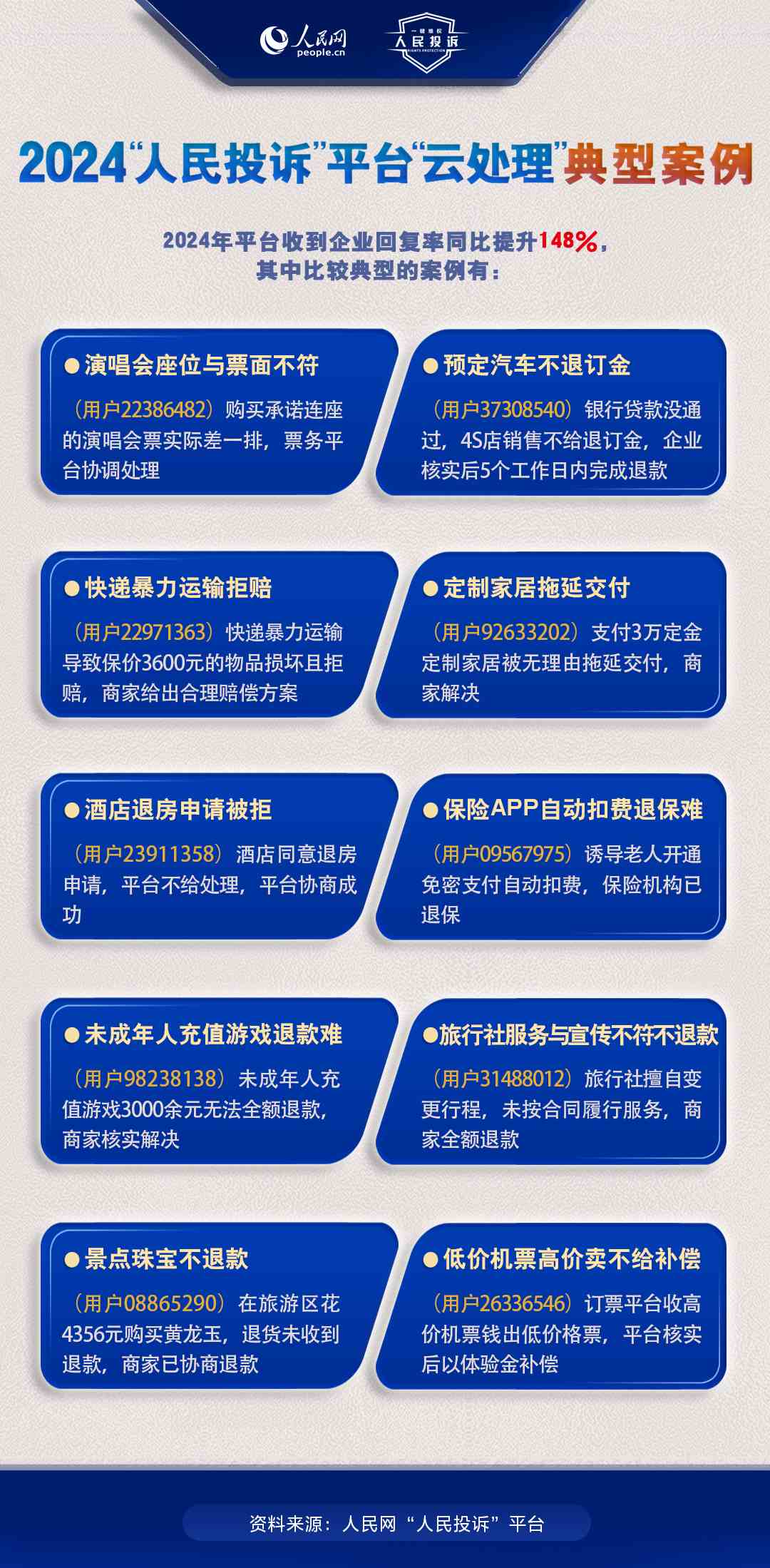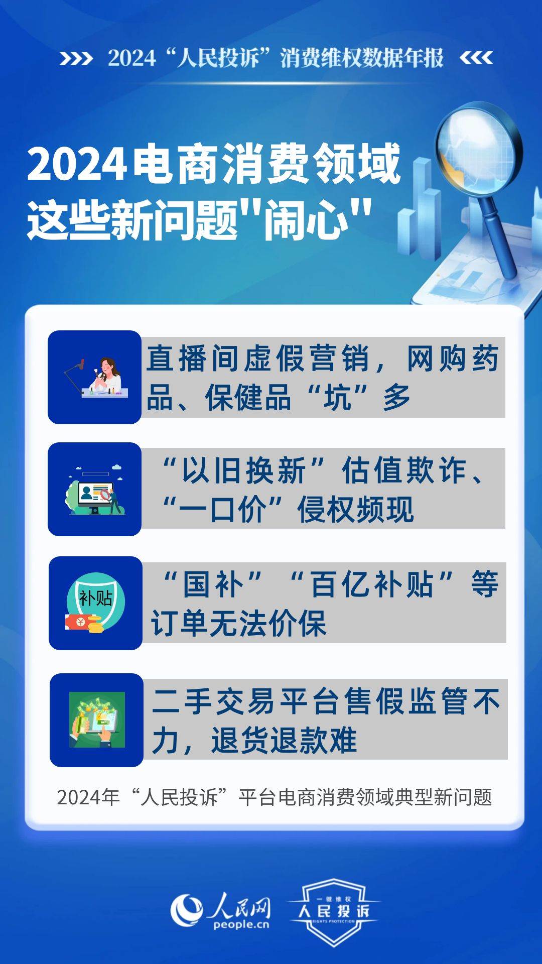 2024年,旅游消費(fèi)持續(xù)火爆,以舊換新“換”出消費(fèi)新活力,直播電商“品質(zhì)化”轉(zhuǎn)型,新能源汽車(chē)購(gòu)銷(xiāo)兩旺……在消費(fèi)市場(chǎng)熱力持續(xù)提升的背景下,旅游產(chǎn)品退訂難,電商促銷(xiāo)虛假價(jià)保,直播間營(yíng)銷(xiāo)違規(guī),車(chē)險(xiǎn)車(chē)貸服務(wù)欺詐,AI培訓(xùn)貨不對(duì)板等消費(fèi)侵權(quán)問(wèn)題引發(fā)廣泛關(guān)注。“人民投訴”發(fā)布年報(bào)帶您回顧這一年來(lái),平臺(tái)消費(fèi)維權(quán)熱點(diǎn)和入駐企業(yè)積極處理糾紛的舉措。