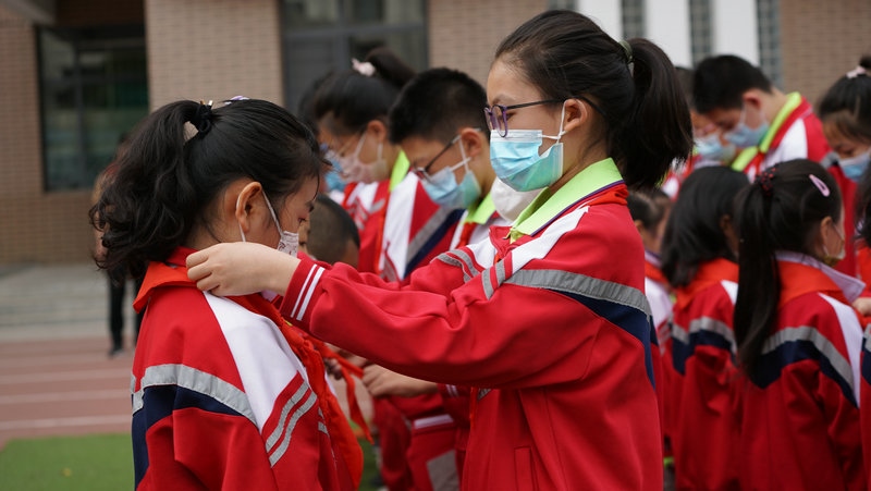 新城區(qū)北垣小學舉行一年級新生分批入隊儀式。新隊員們戴上紅領(lǐng)巾,走在陽光下,熠熠生輝。學校利用好“六一”這個重要時間節(jié)點,開展入隊儀式、“紅領(lǐng)巾獎章”頒章儀式等,用好儀式教育,構(gòu)建階梯式成長激勵體系,不斷增強少先隊員的光榮感。