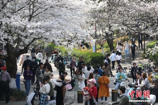 3月15日,武漢大學(xué)賞櫻預(yù)約首日,櫻花大道、鯤鵬廣場附近人潮涌動(dòng)。今年櫻花開放期間,武漢大學(xué)延續(xù)“實(shí)名限額、網(wǎng)絡(luò)預(yù)約、雙重核驗(yàn)”做法,面向社會(huì)公眾實(shí)行免費(fèi)預(yù)約賞櫻制,工作日每天預(yù)約限額1.5萬人,周末每天預(yù)約限額3萬人。此外,還將于3月18日舉辦醫(yī)護(hù)賞櫻專場,邀請?jiān)踽t(yī)療隊(duì)及湖北省內(nèi)抗疫醫(yī)護(hù)人員來校賞櫻,并在弘毅門(原西門)舉行歡迎儀式。 趙軍 攝