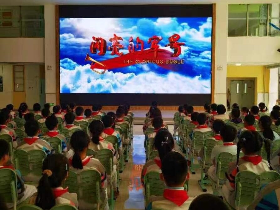 代表團(tuán)為北京市八一學(xué)校小學(xué)部學(xué)生放映電影《閃亮的軍號(hào)》