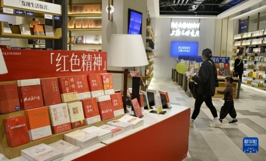 4月22日在北京市朝陽大悅城一家書店拍攝的特色書籍專柜。