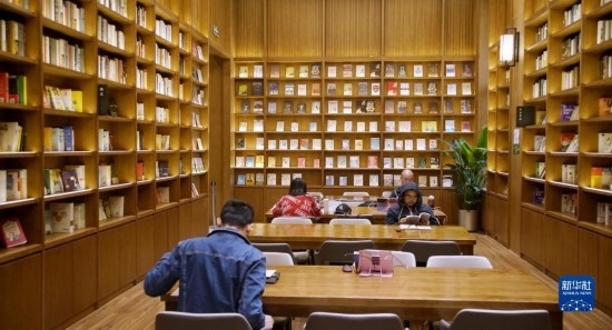 4月21日,讀者在北京市豐臺區(qū)一家書店內(nèi)讀書學(xué)習(xí)。