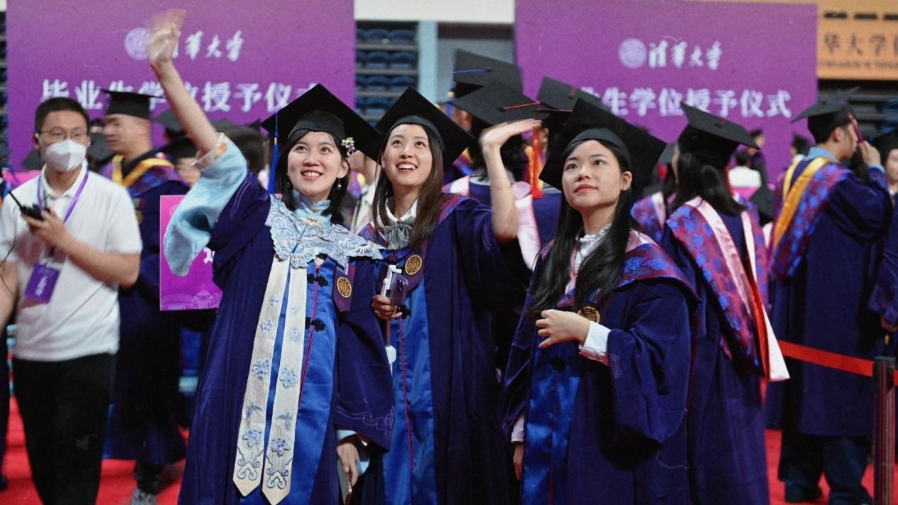 畢業(yè)生向看臺揮手。清華大學供圖