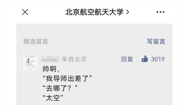 “我導(dǎo)師出差了!”“去哪了?”“太空!”