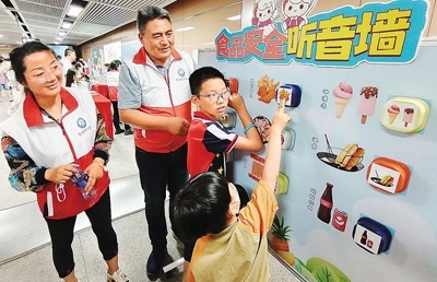 日前,福建省廈門市婦聯(lián)攜手相關(guān)部門舉辦“快樂‘六一’ 安全童行”2023年“六一”體驗式生命教育趣味游園活動。圖為小朋友們在參加食品安全聽音墻活動。 徐 林攝 |