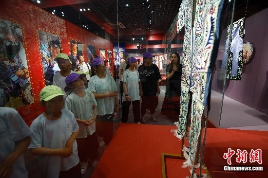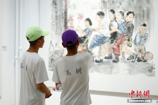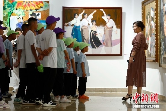 圖為藏族青少年們參觀美術館。中新社記者 富田 攝