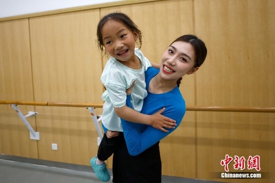 圖為孩子們與舞蹈演員互動。中新社記者 富田 攝