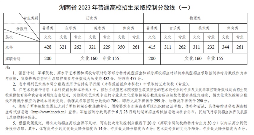 人民網(wǎng)北京6月25日電 據(jù)湖南省教育考試院消息,今天,湖南省2023年普通高校招生各批次錄取控制分?jǐn)?shù)線公布,本科普通類中,歷史類428分、物理類415分;特殊類型招生錄取控制參考分?jǐn)?shù)線中,歷史類482分、物理類477分。(李依環(huán)、實(shí)習(xí)生張婉柔)