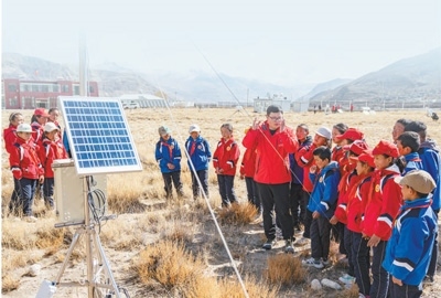中科院珠峰站,工作人員給孩子們講解科學儀器的功能作用。新華社記者 孫 非攝
