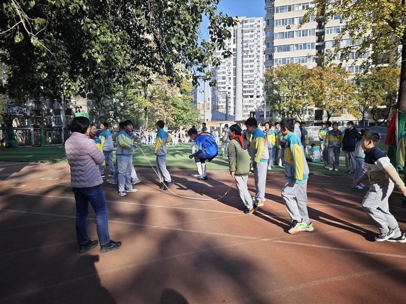為了引導(dǎo)孩子們課間走出教室,北醫(yī)附小根據(jù)季節(jié)設(shè)計大型集體項目,比如秋季開展的跳長繩,老師們也參與進來搖繩,帶動更多孩子參加體育鍛煉。“讓學(xué)生在課間得到充分休息、活動,才能保證學(xué)生的課堂狀態(tài),從而促進課堂教育教學(xué)質(zhì)量提升?!碧飮⒈硎尽?/p>