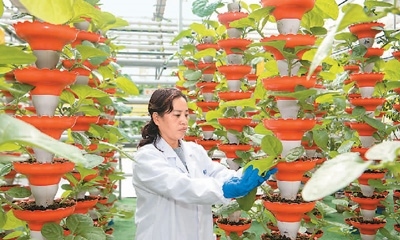 近年來(lái),江蘇省張家港市大力發(fā)展智慧農(nóng)業(yè),引進(jìn)高效示范性農(nóng)業(yè)項(xiàng)目。圖為該市現(xiàn)代農(nóng)業(yè)科技示范園生產(chǎn)基地的工作人員在作業(yè)中。任廣真攝
