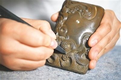 藺霄鱗對澄泥硯進(jìn)行完善。照片均由新華社記者 楊晨光攝