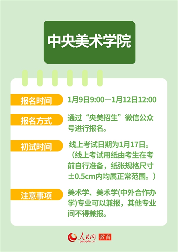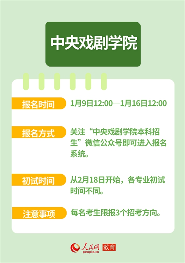 人民網(wǎng)北京1月12日電 近日,全國多所高校發(fā)布藝術(shù)類本科招生簡(jiǎn)章,并明確藝考報(bào)名及初試時(shí)間。作為“新政”落地后的首次考試,2024年的“新藝考”備受關(guān)注。