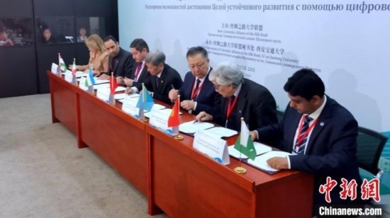 活動現場,西安交通大學、哈薩克斯坦國立大學、伊朗科技大學、塔什干信息技術大學、吉爾吉斯國際大學、巴基斯坦國立科技大學、塔吉克斯坦國立大學共同簽署“絲綢之路大學聯盟”內上海合作組織成員國《高等教育合作協議》。在該合作協議框架下,各方達成首個學分互認項目的共識,即共同建設絲綢之路大學聯盟“可持續(xù)發(fā)展目標實現路徑在線課程”。