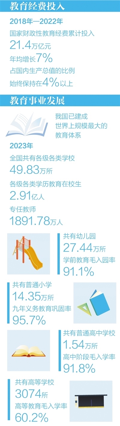 教育興則國家興,教育強則國家強。新時代以來,黨中央作出加快教育現(xiàn)代化、建設(shè)教育強國的重大決策,推動新時代教育事業(yè)取得歷史性成就、發(fā)生格局性變化。我國已建成世界上規(guī)模最大的教育體系,教育現(xiàn)代化發(fā)展總體水平跨入世界中上國家行列。