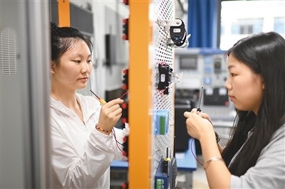 在重慶電子工程職業(yè)學(xué)院,智能互聯(lián)網(wǎng)絡(luò)技術(shù)專業(yè)的學(xué)生們在上信息系統(tǒng)設(shè)備安裝與調(diào)試實(shí)訓(xùn)課。孫凱芳攝(人民圖片)