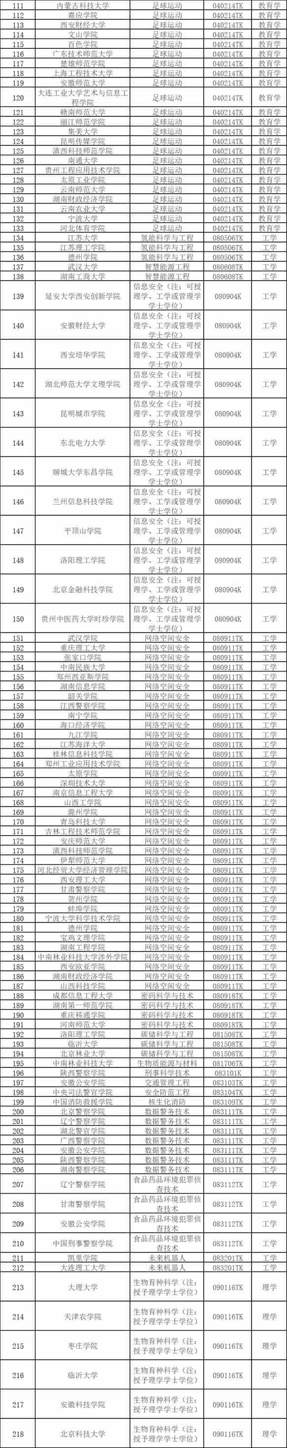 從申報的專業(yè)類型來看,2024年度共申報176種專業(yè)。其中,申報數(shù)量前五名的專業(yè)依次為:足球運(yùn)動(39個)、網(wǎng)絡(luò)空間安全(37個)、運(yùn)動訓(xùn)練(34 個)、健康與醫(yī)療保障(17個)、老年醫(yī)學(xué)與健康(14個)。