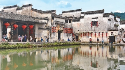 隨著暑期旅游季的到來,享有“畫里鄉(xiāng)村”美譽的安徽省黃山市黟縣宏村景區(qū)推出研學(xué)游、親子游等多種旅游產(chǎn)品,圖為游客在宏村景區(qū)游玩。許家棟攝(人民圖片)