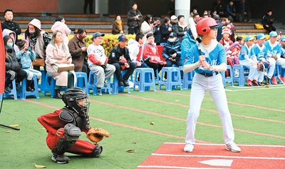 兩岸青少年在福州市錢塘文博小學開展棒壘球競技交流。
