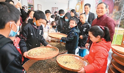 在福州教育學院附屬第二小學,臺灣青少年近距離領略中華傳統(tǒng)文化的獨特魅力。書法藝術(shù)的雅致、篆刻技藝的精妙、掐絲琺瑯的華麗、金箔畫書簽的韻味……每一項體驗都給臺灣青少年留下深刻印象。福州茉莉花茶傳統(tǒng)窨制工藝傳承人張子健現(xiàn)場展示了茉莉花茶制作技藝,不少臺灣青少年興趣盎然地跟著學習。兩岸青少年還攜手種下“連心樹”,期盼友誼之樹茁壯成長,未來見證彼此情誼的延續(xù)與發(fā)展。