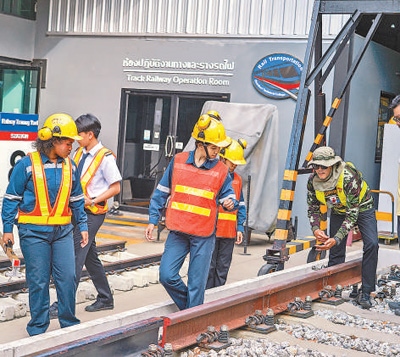 泰國(guó)春武里技術(shù)學(xué)院與中國(guó)多所鐵道學(xué)院保持技術(shù)交流。圖為軌道專業(yè)的學(xué)生們進(jìn)行實(shí)操訓(xùn)練。