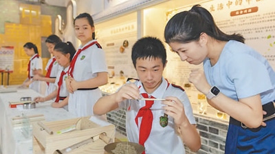 圖為學(xué)生們在進行中醫(yī)藥研學(xué)。