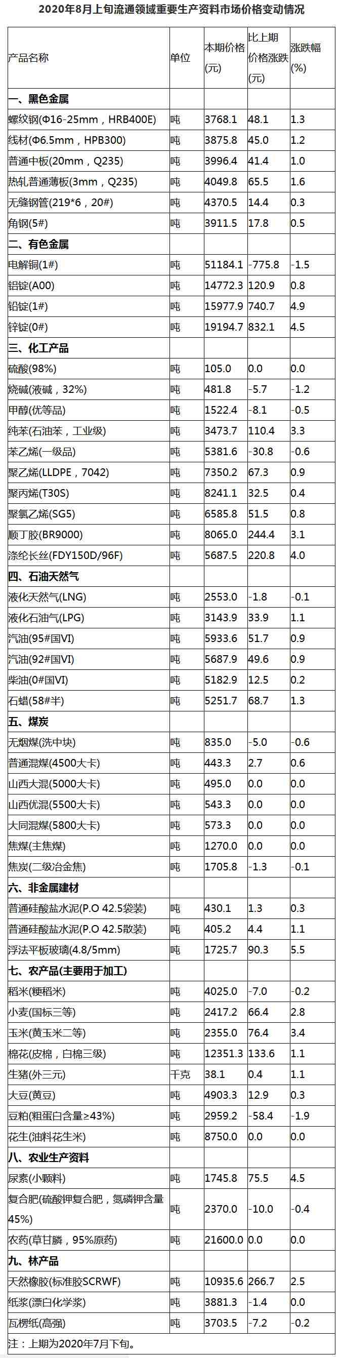 據(jù)國家統(tǒng)計(jì)局網(wǎng)站消息,據(jù)對(duì)全國流通領(lǐng)域9大類50種重要生產(chǎn)資料市場(chǎng)價(jià)格的監(jiān)測(cè)顯示,2020年8月上旬與7月下旬相比,31種產(chǎn)品價(jià)格上漲,11種下降,8種持平。其中,生豬(外三元)38.1元/千克,與7月下旬相比上漲0.4元,漲幅1.1%。