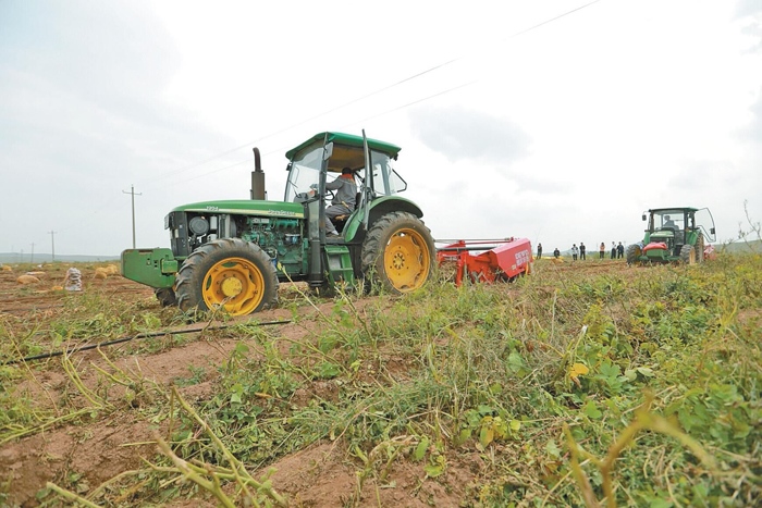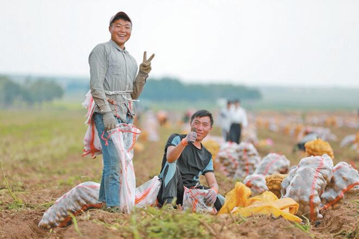 近日,在烏蘭察布市察右后旗白音察干鎮(zhèn)建設(shè)村馬鈴薯種植基地,見(jiàn)到該村連營(yíng)農(nóng)業(yè)機(jī)械合作社負(fù)責(zé)人郝軍時(shí),他正忙得不亦樂(lè)乎。據(jù)了解,今年馬鈴薯銷(xiāo)售價(jià)格可觀,他們的合作社迎來(lái)了又一個(gè)豐收年。